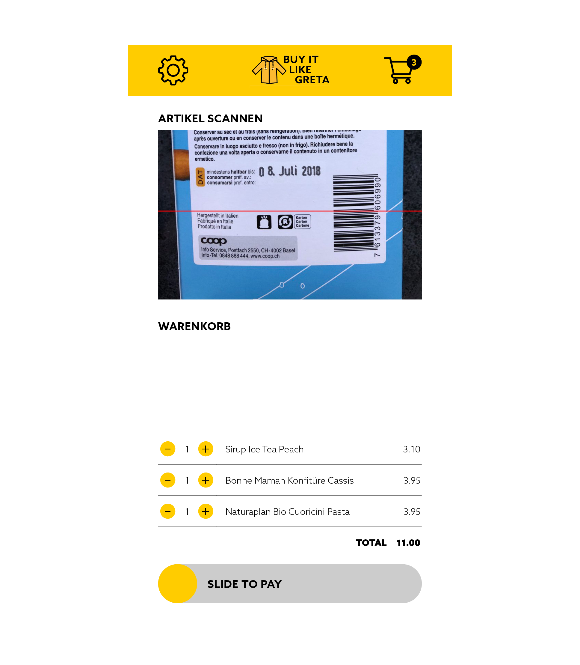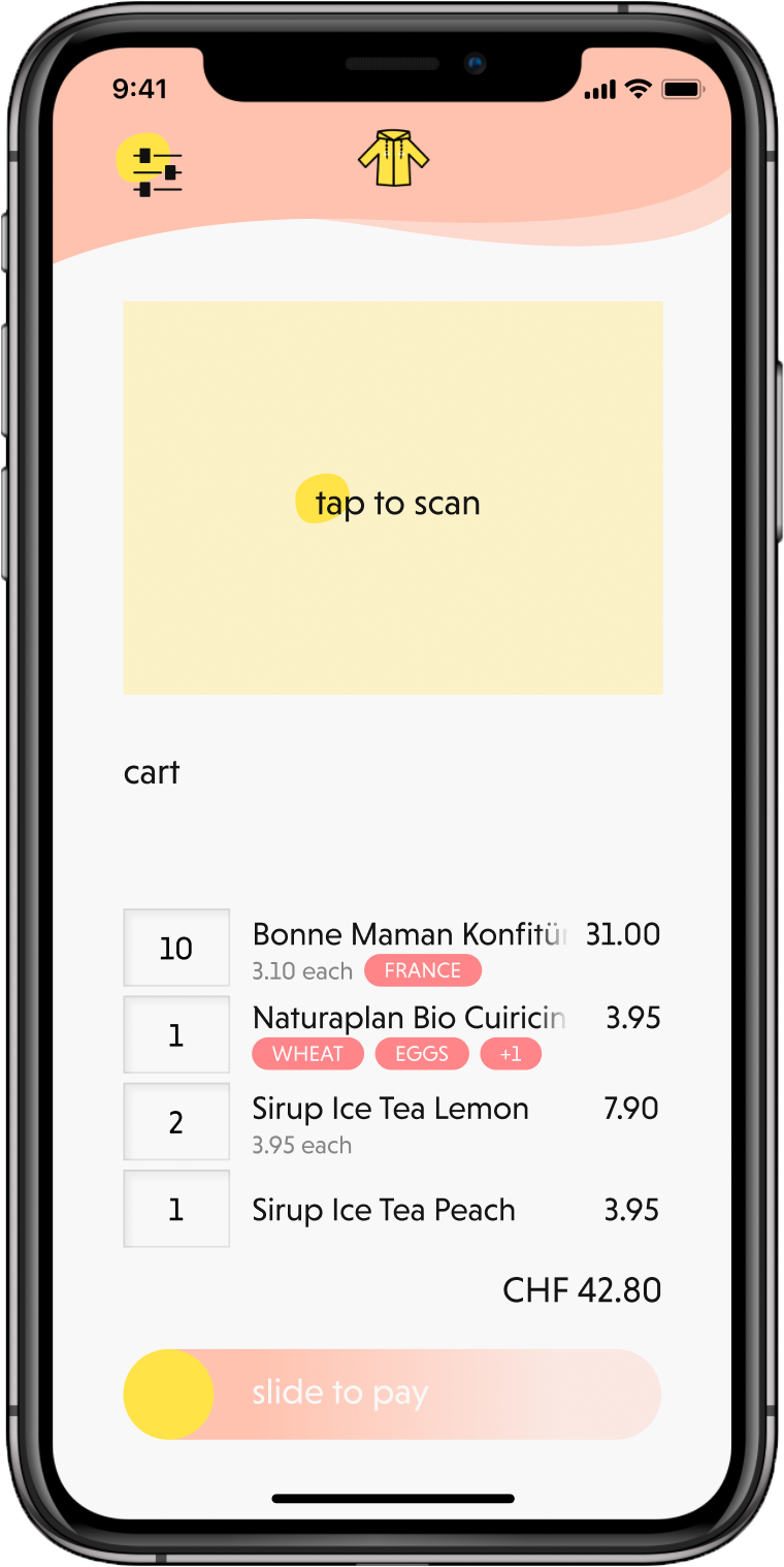 The app integrates seamlessly into the shopping process. By scanning a barcode, products are added to the shopping list and checked for origin, ingredients, and manufacturer. If any aspect conflicts with the consumer’s values, they are notified. With payment possible directly in the app, there’s no need to wait at the checkout.